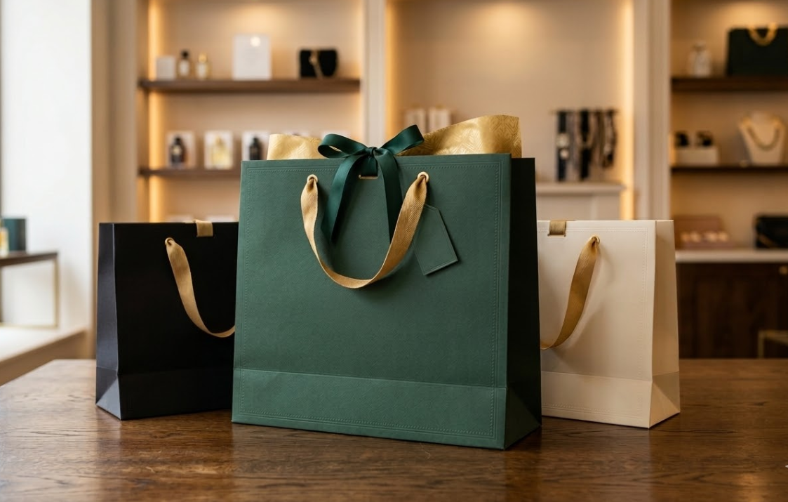 Een zorgvuldig ontworpen luxe papieren tas straalt kwaliteit, verfijning en oog voor detail uit. Het verbetert de winkelervaring, versterkt de merkidentiteit en fungeert zelfs als mobiele reclame wanneer klanten de tas in openbare ruimtes meenemen.