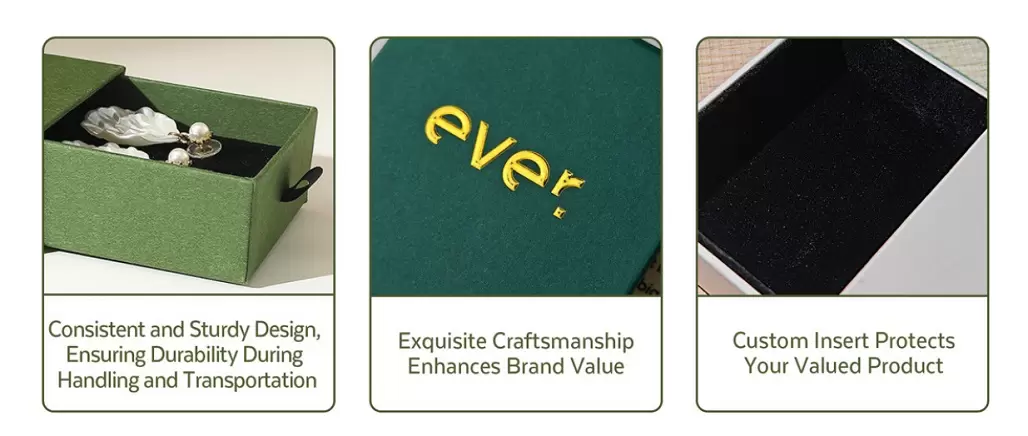 De eerste indruk telt, zeker in de detailhandel. Op maat gemaakte, stevige ladeboxen stralen kwaliteit en verfijning uit en kunnen het imago van uw merk aanzienlijk verbeteren. Wanneer klanten een product in een prachtig vormgegeven, stevige doos ontvangen, verbetert dit hun perceptie van het merk, waardoor de kans groter is dat ze terugkomen voor toekomstige aankopen.